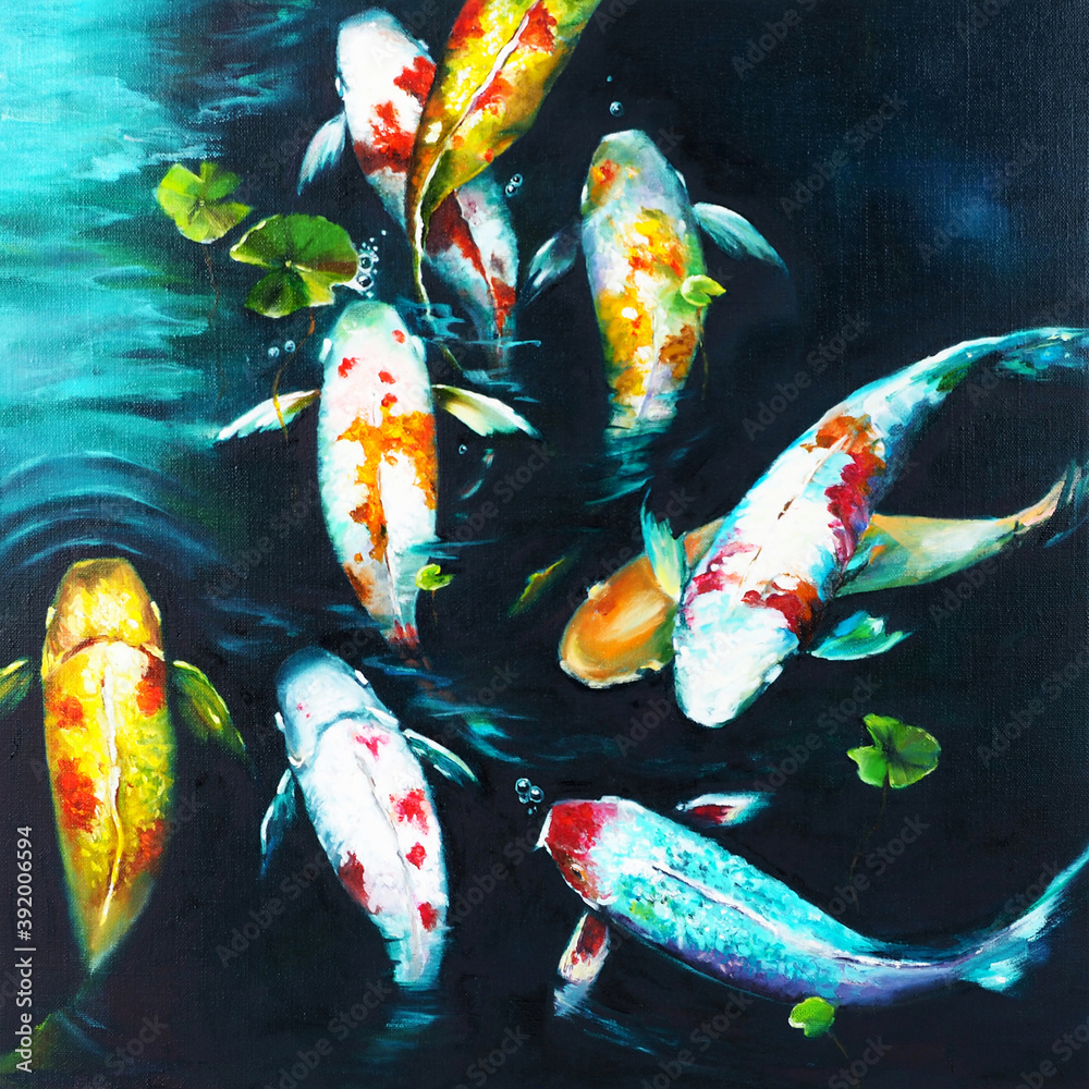 Koi Fish Oil Painting On Canvas Wall Art Colorful Feng Shui Painting Zen Wall Decor 9 Nine Japanese Carp Fish In The Pond Underwater Life Stock Illustration Adobe Stock
